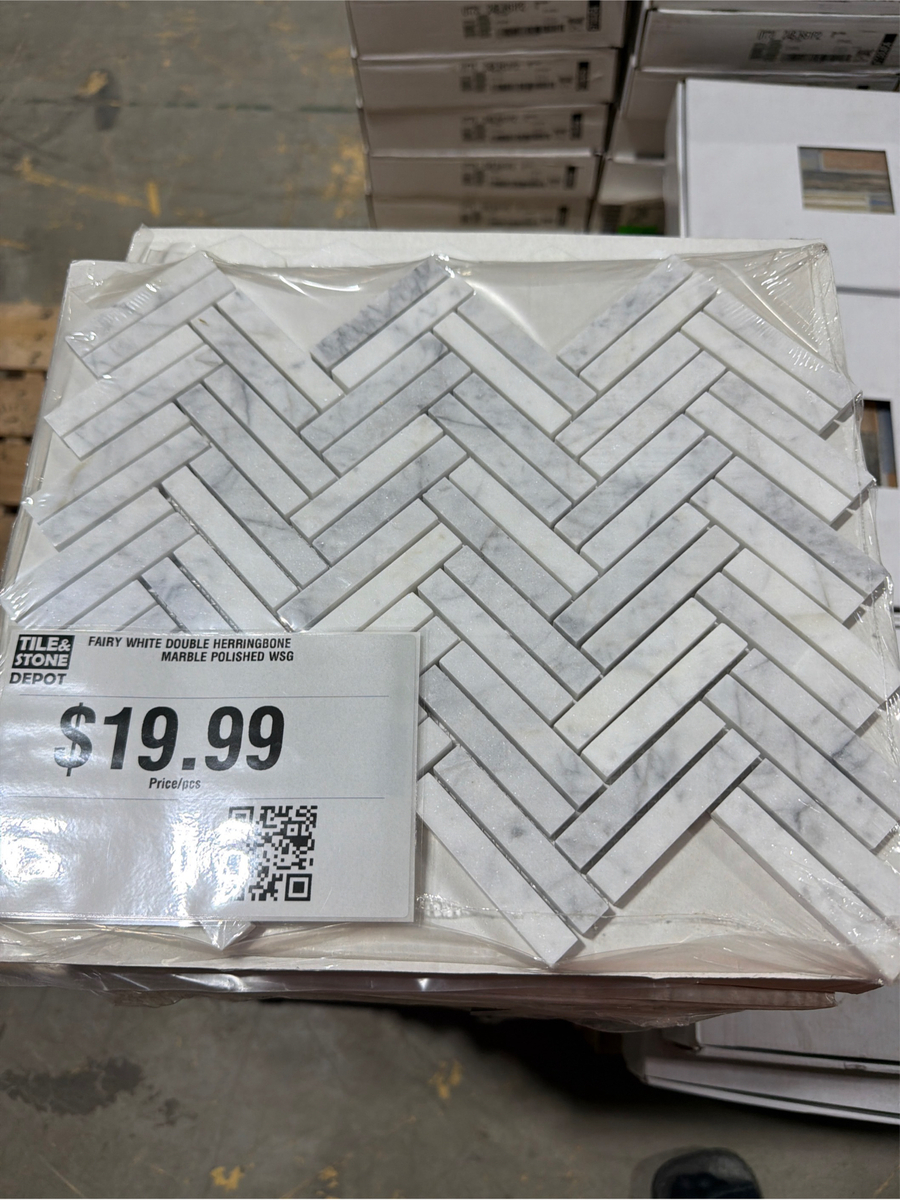 FAIRY WHITE DOUBLE HERRINGBONE MARBLE POLISHED WSG